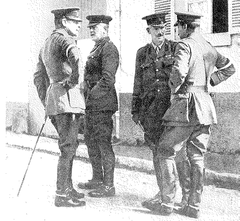 Readers of the “Illustrated London News” may have noticed the photograph below, probably taken during the retreat from Mons, which shows our old boy, Arthur Percival, with a number of notable figures. Arthur, a veteran of the Boer War and the first Old Dragon to have won a DSO, is serving as a General Staff Officer to Major-General Monro.
