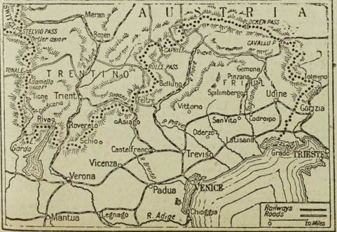 After that they managed to drag themselves a further 3-4 km to the railway station at Carsarsa (just north of San Vito on the map) where the night was spent huddled together beside a siding. There was no food and the trains were all full. They can have got little sleep that night.