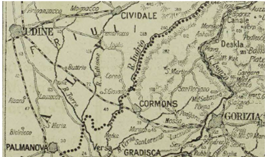 After that they managed to drag themselves a further 3-4 km to the railway station at Carsarsa (just north of San Vito on the map) where the night was spent huddled together beside a siding. There was no food and the trains were all full. They can have got little sleep that night.