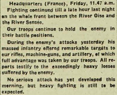 I fear that the events on the Western Front will over-shadow our holiday. It is clear now that the German Advance has been a significant one; indeed it seems we have now been driven back to where we were before the Battle of the Somme in 1916. Along with their families, I will be pleased to hear that our Old Boys have come through unscathed.