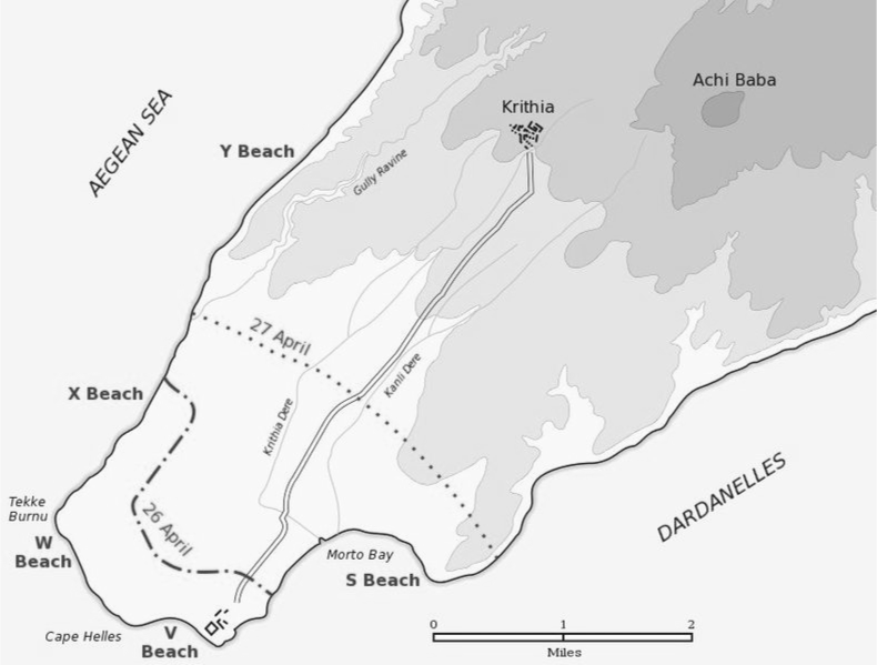 There was another fire on V beach, and I could see the huge wall of the castle of Sedd-ul-bahr in the glare (reminded me rather of Virgil’s description of the fall of Troy when the forms of the malignant gods loomed out above the smoking walls). Just around the corner from W beach another heap ************* was ablaze, and there was a fire on Gully beach. For an hour or more I stood watching the flames; the Turks were at first firing shrapnel into the middle of the beach, thinking they had set fire to something and that they would catch those who were putting it out. About 5 a.m. they seemed to realise we were gone, as they started shelling out to sea among the ships.