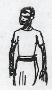 Picture by Sydney giving an impression as he saw it of our journey to Sakkara. In the distance to left is the Step Pyramid, and all about under the sand are the tombs. The further figure is the dragoman; the nearer is myself.