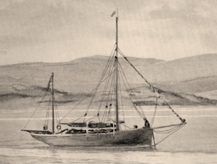‘Blue Dragon I’ – a seven ton yawl, 25 ft. in length, and 9 ft. beam, was launched in 1892 and sailed by the Skipper until he sold it in 1905. As Skipper said, “My cruises may be unique in the fact that I have sailed the same little boat from Oxford, where she was built, down the Thames and round Land’s End and right up to Stornaway and Cape Wrath; I have never once had a paid hand on board, and never but once signalled for a pilot.”